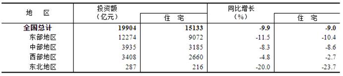 1—3月份,全国房地产开发投资19904亿元,同比下降9.9%(按可比口径计算,详见附注6);其中住宅投资15133亿元,下降9.0%。