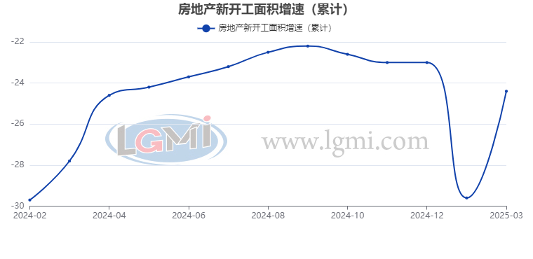 1-3月份,房地产开发企业房屋施工面积613705万平方米,同比下降9.5%。其中,住宅施工面积427237万平方米,下降9.9%。房屋新开工面积12996万平方米,下降24.4%。其中,住宅新开工面积9492万平方米,下降23.9%。房屋竣工面积13060万平方米,下降14.3%。其中,住宅竣工面积9502万平方米,下降14.7%。