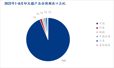 印尼8月镍产品出口数据一览:出口中国占比98.57%