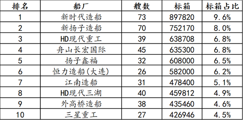 集装箱船手持订单前10船厂