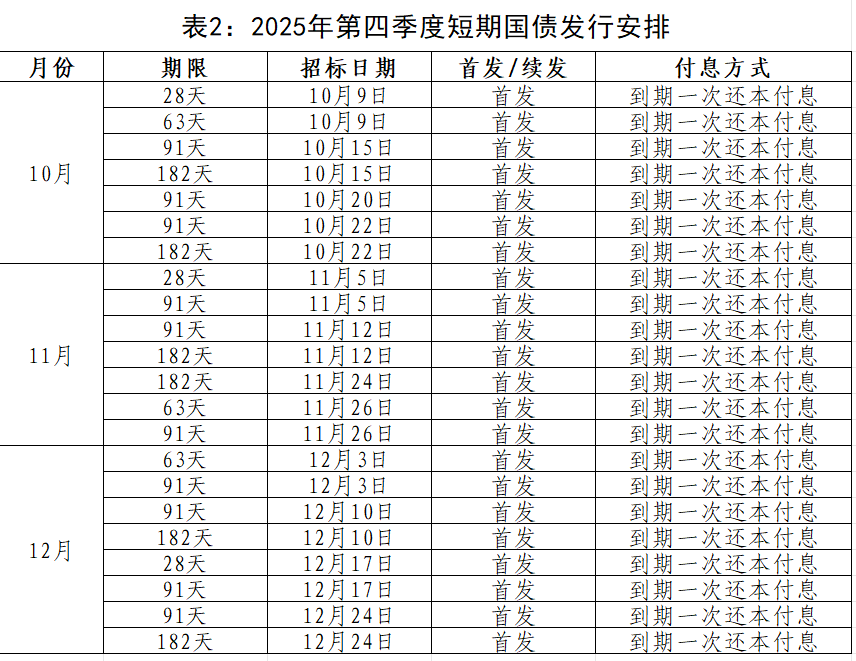 关于公布2025年第四季度国债发行有关安排的通知