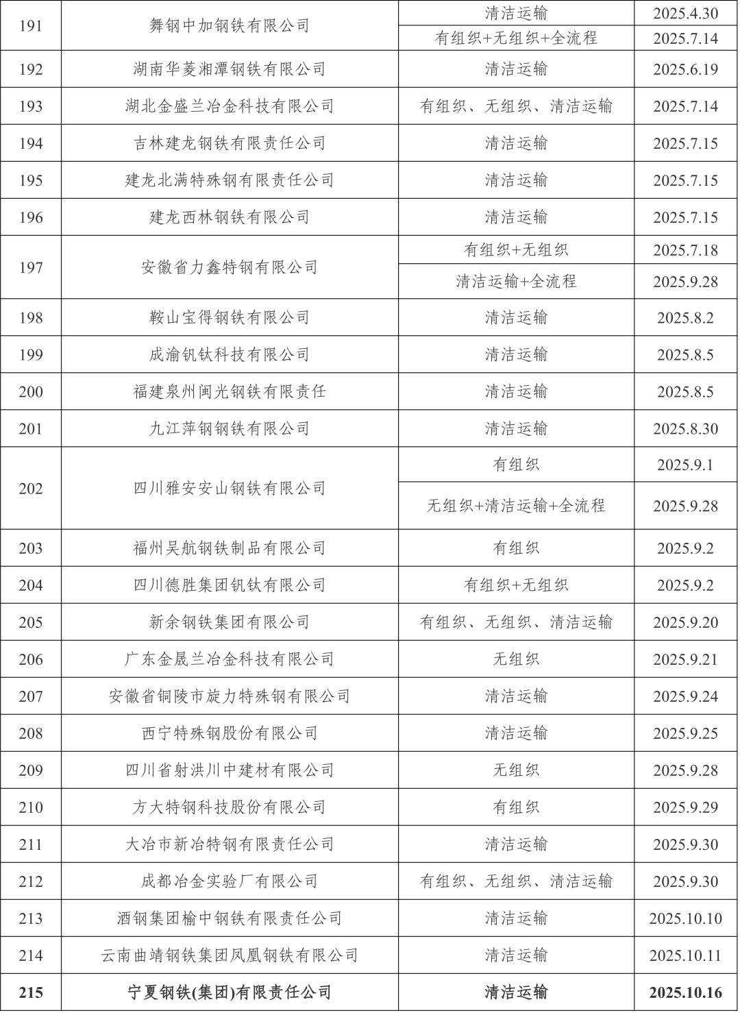 自2020年8月起,中国钢铁工业协会开展了钢铁企业超低排放改造和评估监测进展情况公示工作。截至目前,已有215家企业在钢协网站进行公示。已公示企业名单汇总及各企业公示内容整理如下: