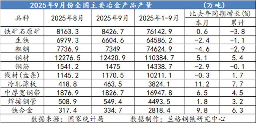 兰格追踪:2025年1-9月全国主要冶金产品产量